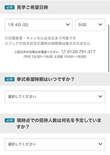式場見学の件数で電子マネーギフトの金額が変わるので、2,3会場の予約をするのがおすすめです!
