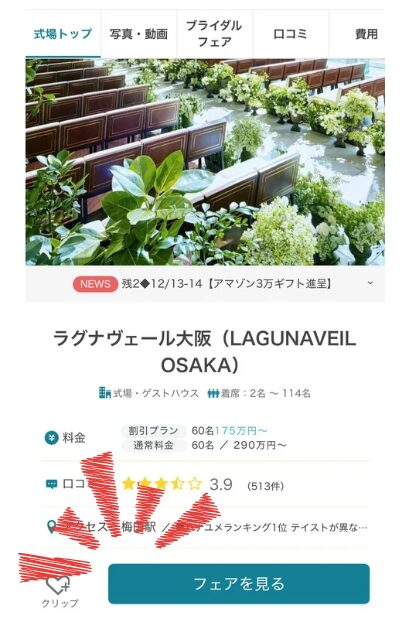 結論からお伝えすると、ラグナヴェール大阪の見学予約はハナユメからがおすすめです!