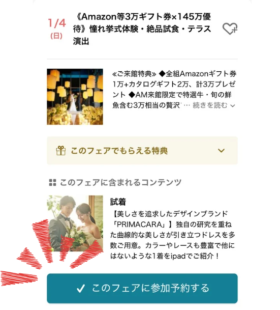 詳細が出てくるので、問題なければ「このフェアに参加予約する」をクリックしましょう。