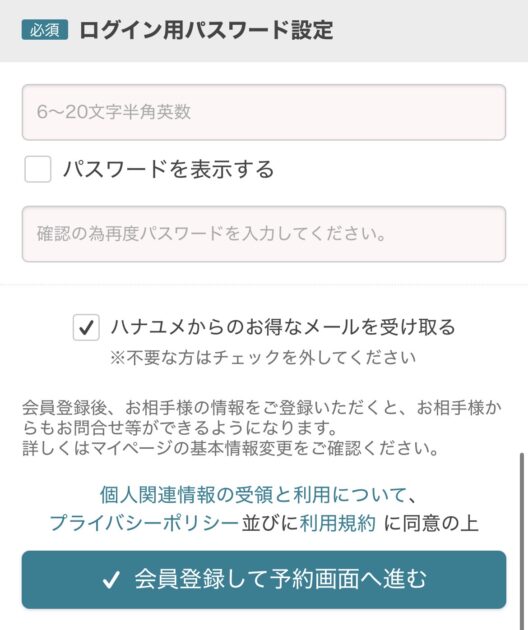 ハナユメからのメールが不要な場合は、チェックを外すのを忘れずに!
