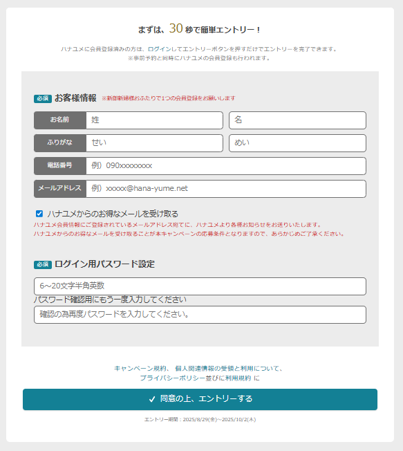 | まずはハナユメキャンペーンにエントリー | 2025年11月6日(木)まで |