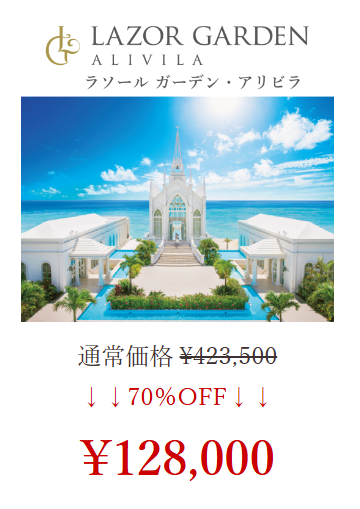 実はラソールガーデン・アリビラは、会場の公式サイトよりもハナユメ経由で予約したほうがお得なんです!